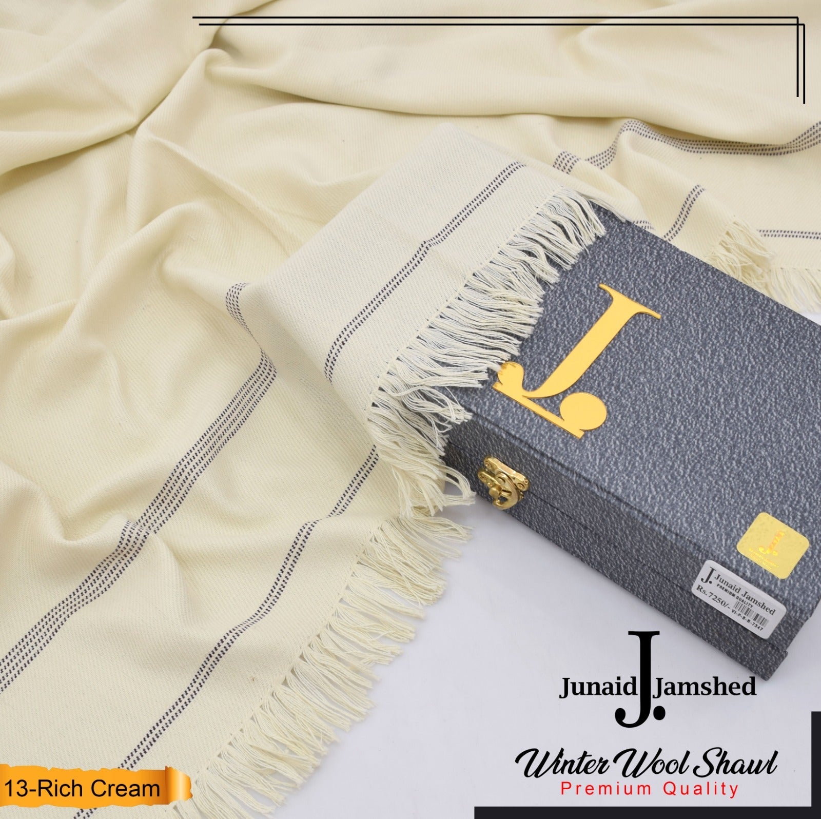 J. PREMIUM WOOL SHAWL FOR MENS WITH GIFT BOX & BAG ( Rich Cream )